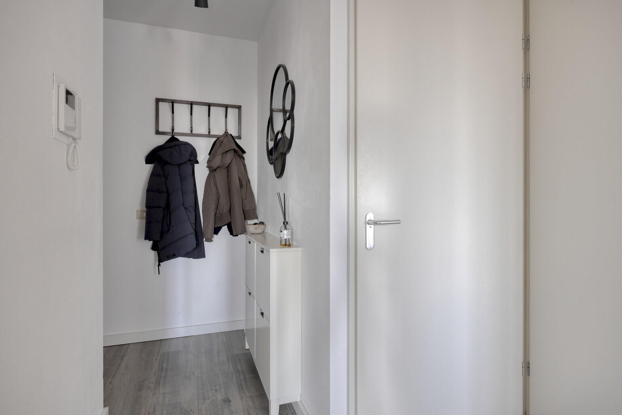 Entree/hal met meterkast (groepenkast), voorzien van 6 groepen en 2 aardlekschakelaars, met toegang tot de woonkamer, slaapkamer, badkamer en inpandige berging.