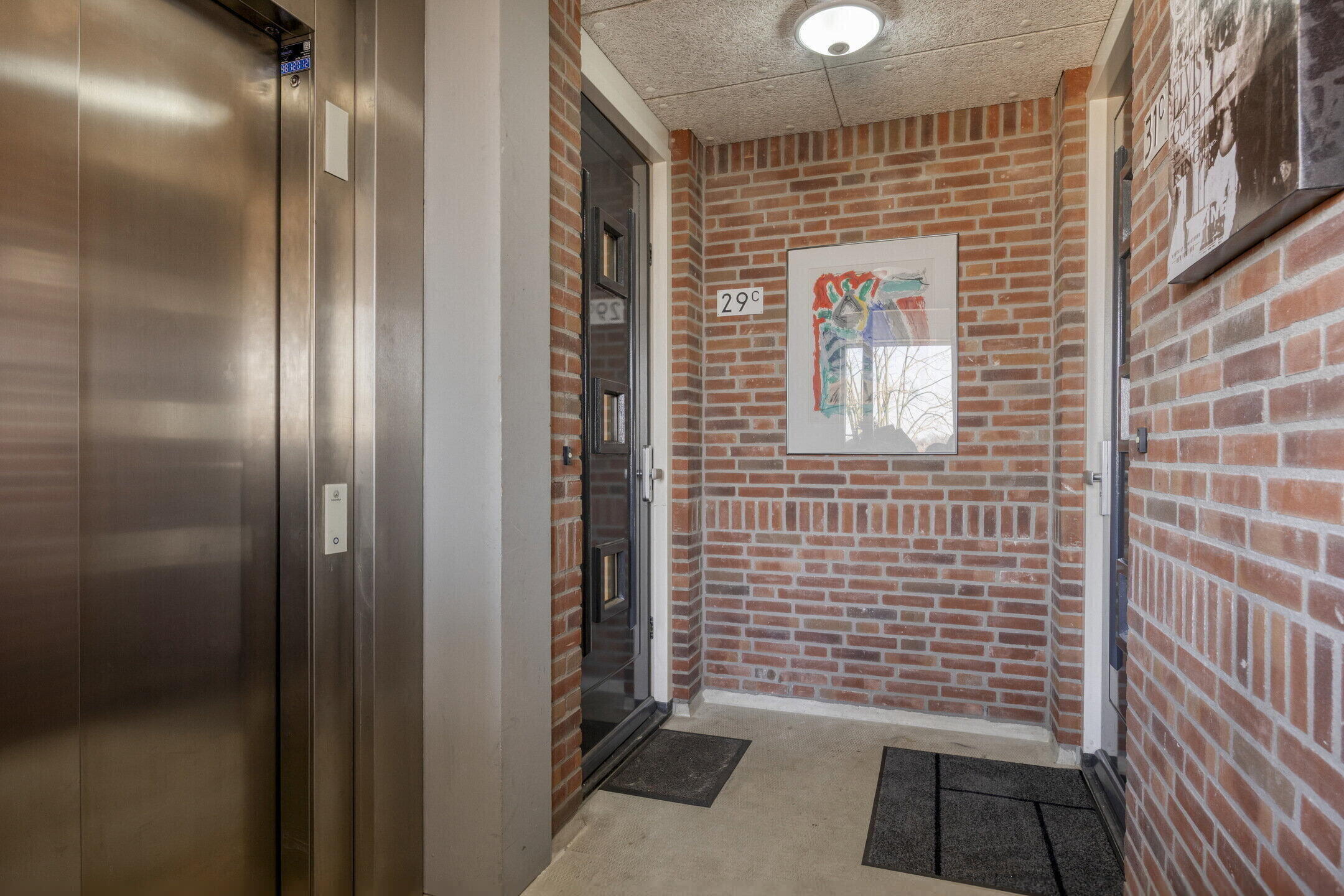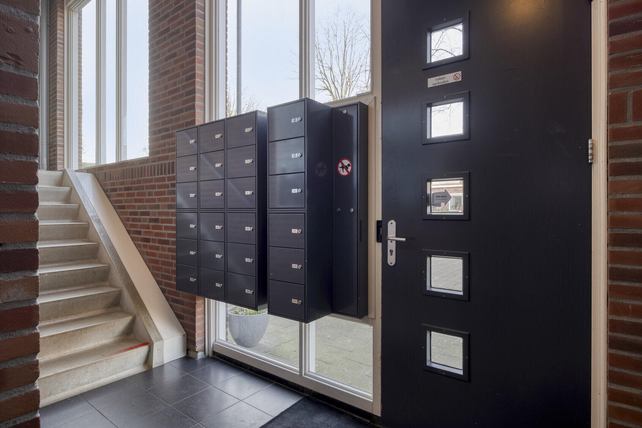 Centrale entree met bellentableau, brievenbussen, intercom, lift en trappenhuis. Vanuit hier toegang tot de bergingen in het souterrain.