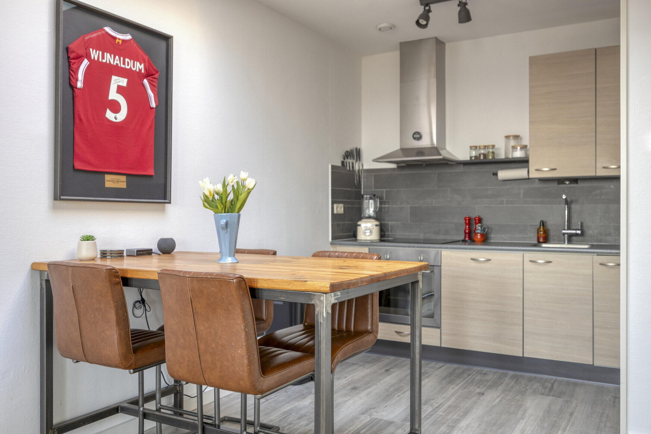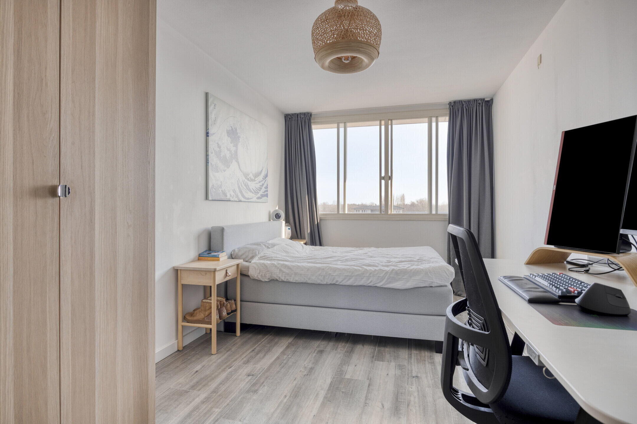 Het appartement beschikt over een lichte woonkamer met open keuken, een royale slaapkamer, een badkamer met douche, wastafel en toilet, een inpandige berging/wasruimte en een separate berging in het souterrain. Daarnaast bestaat de mogelijkheid om (indien beschikbaar) een parkeerplaats te huren in de ondergelegen parkeerkelder.